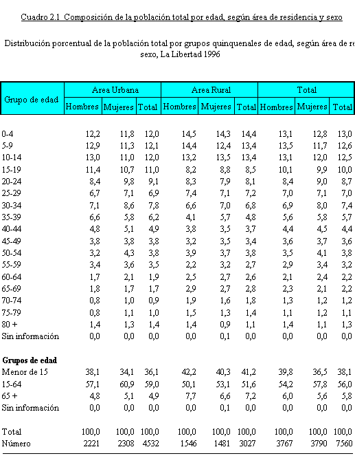 de los niños con sus padres, según área de residencia, La Libertad 1996.