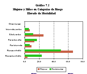 | Nota: La razón de riesgo se define como el cociente de (1) la proporción de niños muertos entre aquellos nacidos en un categoría específica de riesgo, y (2) la proporción de niños muertos entre aquellos nacidos a mujeres en ninguna categoría de riesgo elevado | ||||