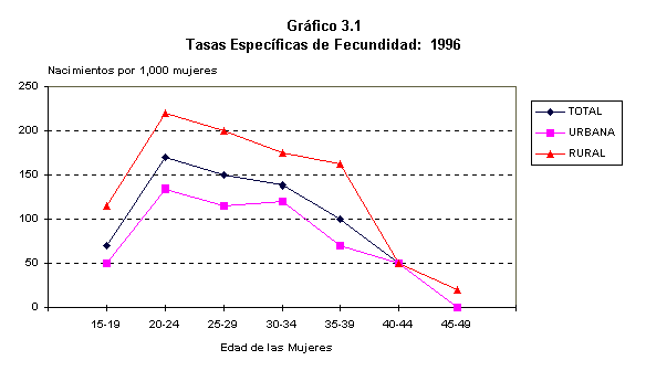 En el Gráfico 3.1 se presenta las tasas de fecundidad