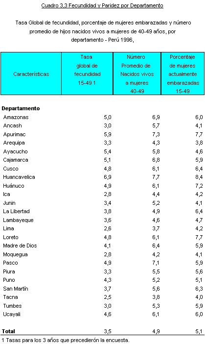 | 2 Promedio a mujeres 40-49 años según ENDES 1996. |