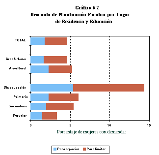 | 1Necesidad insatisfecha para limitar: mujeres actualmente embarazadas cuyo último embarazo no fue deseado y mujeres fértiles que no están embarazadas o amenorréicas que no desean más hijos. Necesidad insatisfecha para espaciar: mujeres actualmente embarazadas o amenorréicas cuyo último embarazo si fue deseado, pero más tarde y mujeres fértiles que no están ni embarazadas ni amenorréicas que si desean más hijos pero prefieren esperar por lo menos dos años. | |||||||||||