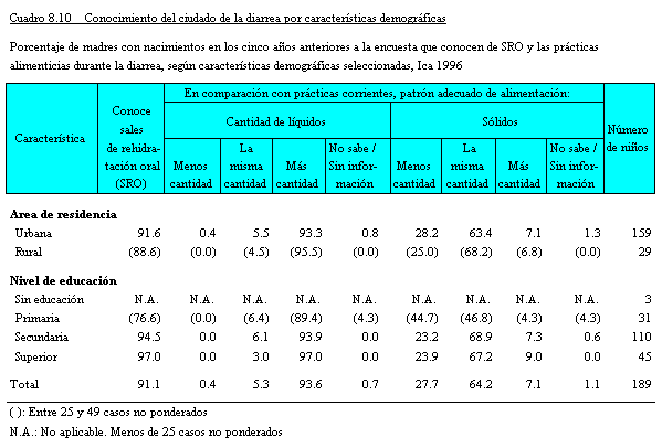 de los episodios de diarrea, en el Cuadro 8.11 se presenta, según