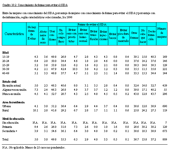el SIDA. Además, un 8 por ciento de las mujeres que declara