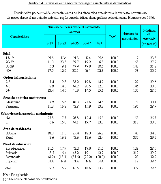 los nacimientos (espaciamiento de los hijos). La ocurrencia en
