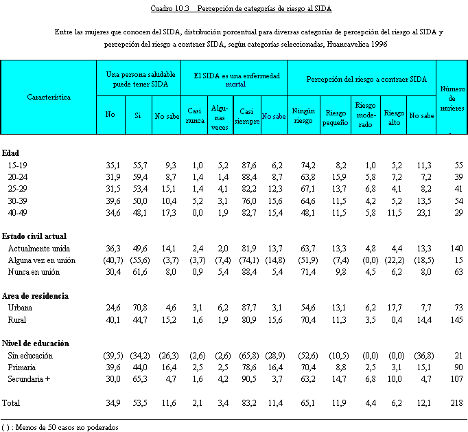 que dicen conocer el SIDA piensan que ellas tienen algún