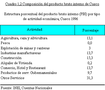 La economía cusqueña hacia 1996 presenta