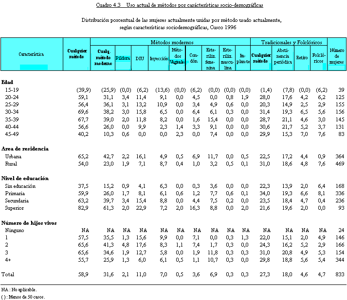 según edad de la mujer se presenta en el Cuadro 4.3 para