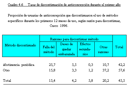 El Cuadro 4.6 muestra las tasas de discontinuación