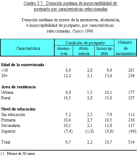 y la insusceptibilidad de postparto se presenta en el Cuadro 5.7