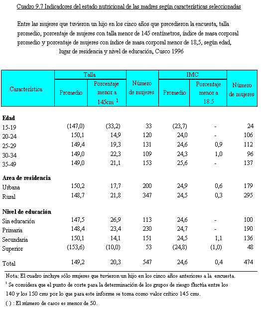 en el Cuadro 9.7. Asimismo, los valores promedios y el porcentaje