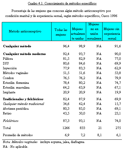 de por lo menos un método de regulación de la fecundidad.
