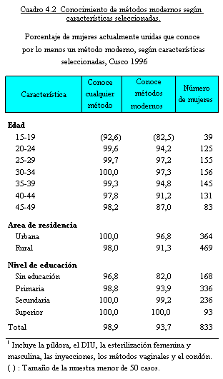 de planificación familiar, siendo los métodos modernos