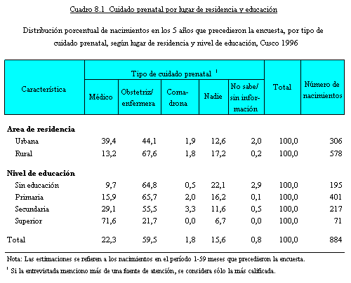 anteriores a la ENDES 1996 se resume en el Cuadro