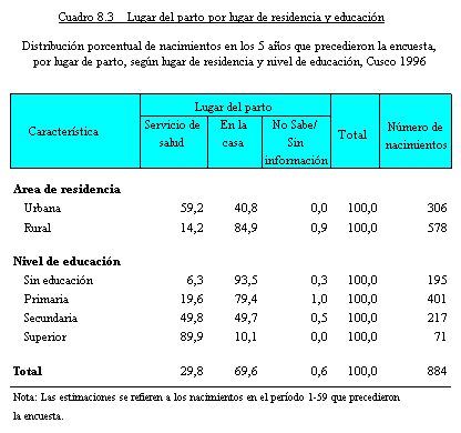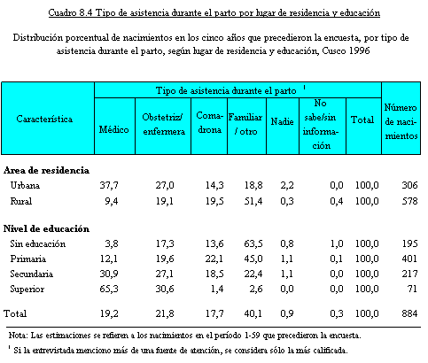 y 22% por obstetrices o enfermeras. El resto de nacimientos fueron