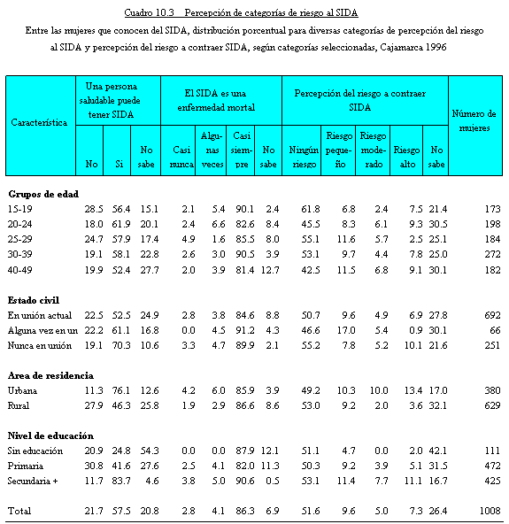 se evaluó en la ENDES 1996 preguntando a los entrevistados