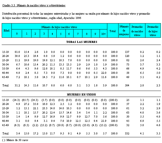 4 hijos nacidos vivos, el mismo que es de 6.9 hijos entre aquéllas