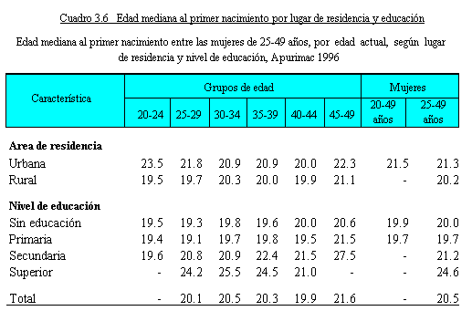 la edad mediana al primer nacimiento. Este indicador se utiliza
