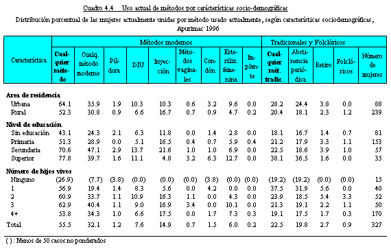modernos de mayor uso: 15 y 8 por ciento de las mujeres unidas