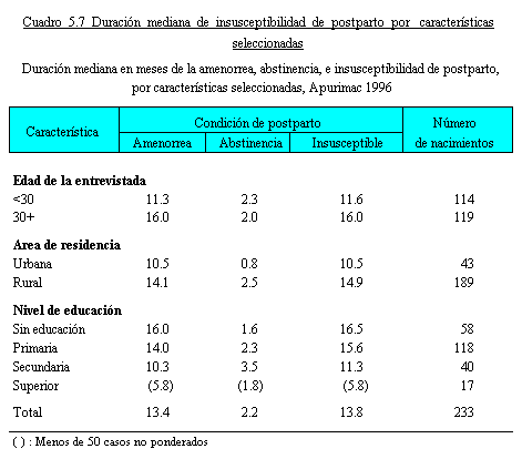 y la insusceptibilidad de postparto se presenta en el Cuadro 5.7