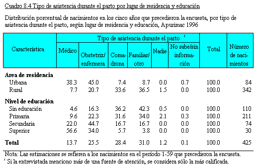 anteriores a la ENDES 1996 se resume en el Cuadro 8.3 por lugar