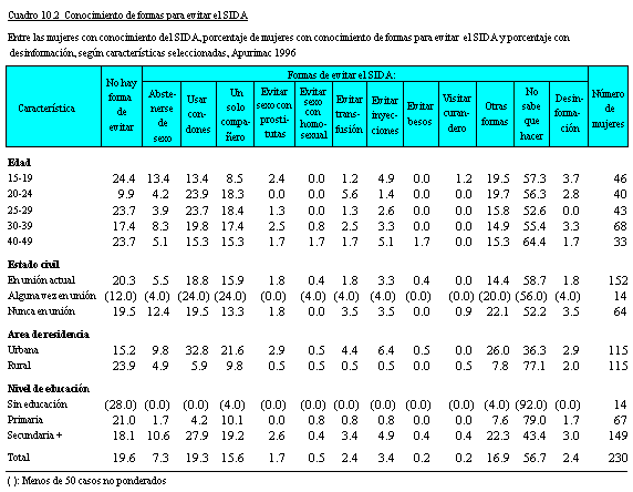 para evitar el SIDA, por edad y estado marital es mayor entre