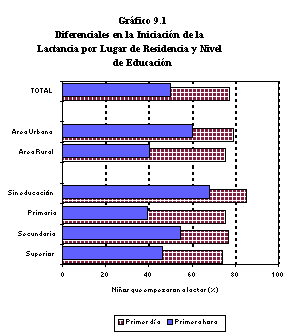1 Incluye los niños que empezaron la lactancia dentro de la primera hora de nacidos.