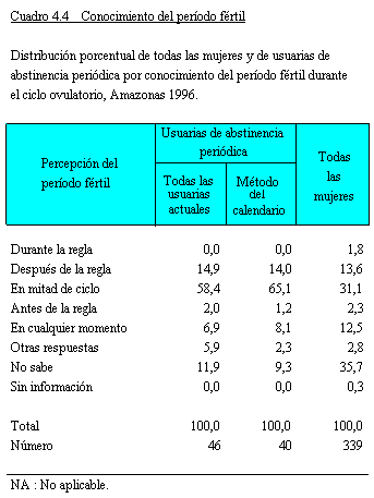 de uso del ritmo y el retiro. Para evaluar este conocimiento,