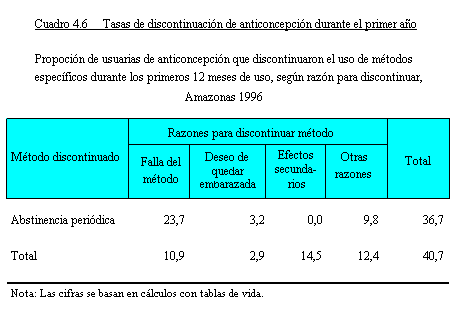 Tasas de discontinuación de anticonceptivos