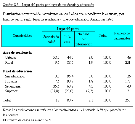 de la madre. En el área urbana de Amazonas el nivel de