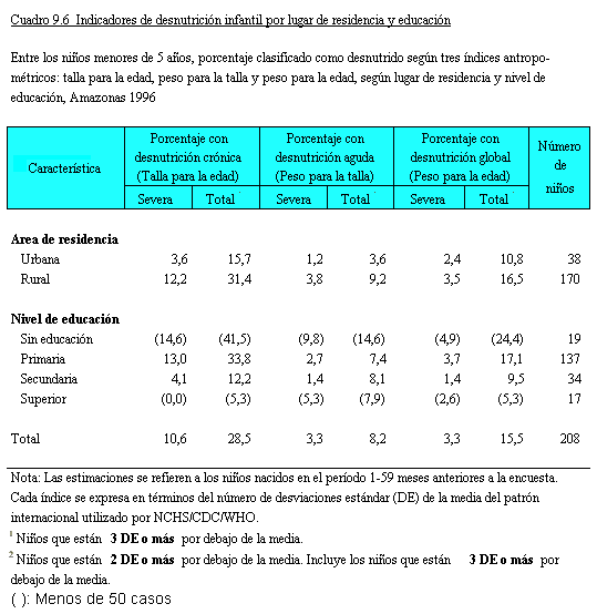 del nivel de desnutrición en la población en estudio.