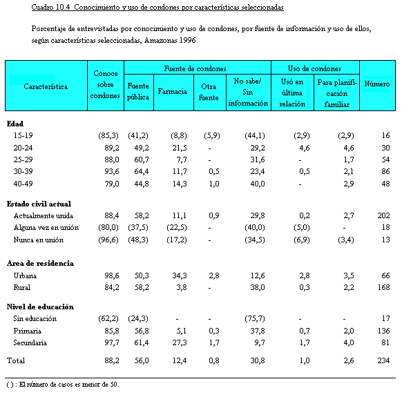 se detallan en el Cuadro 10.4 por edad, estado civil, nivel de