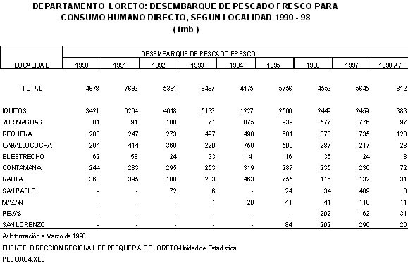 DEPARTAMENTO LORETO: DESEMBARQUE DE PESCADO PARA CONSUMO