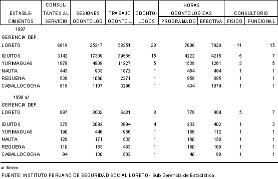 LORETO: PRODUCCION Y RECURSOS ASISTENCIALES DE LOS