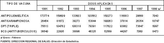 LORETO: DOSIS APLICADAS DE VACUNACION ANTISARAMPIONOSA