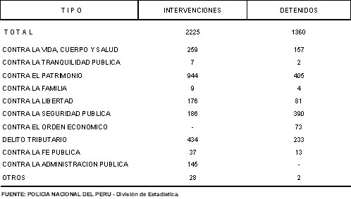 LORETO: INTERVENCIONES Y DETENIDOS POR DELITOS