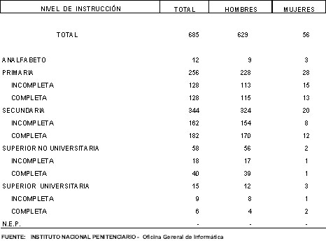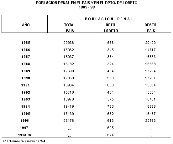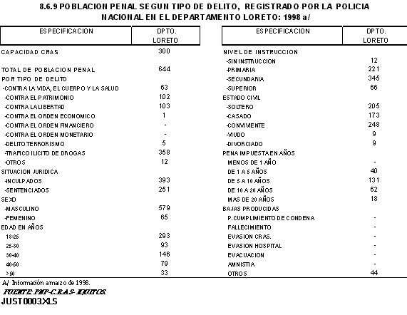 LORETO: POBLACION PENAL POR SEXO, SEGUN NIVEL