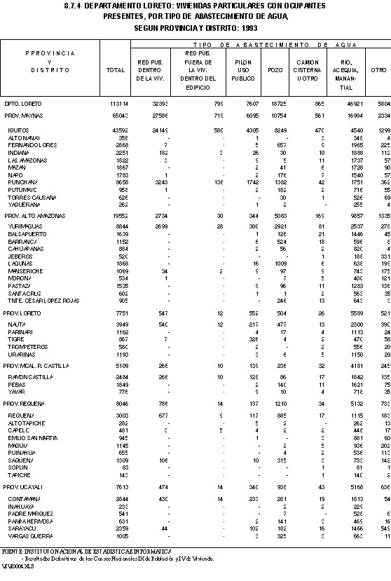 DEPARTAMENTO LORETO: VIVIENDAS PARTICULARES CON OCUPANTES PRESENTES, SEGUN TIPO DE VIVIENDA: 19981 Y 1993