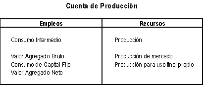 En el cuadro de Cuentas Económicas Integradas, las transacciones u operaciones económicas presentan un equilibrio, es decir, el total recibido es igual al total pagado, debido a que una transacción es un ingreso para un agente y un gasto para otro. Así por ejemplo, la suma de los intereses pagados por los sectores es igual a los intereses recibidos por la economía en su conjunto. CUENTA DE PRODUCCION Pone de manifiesto el valor agregado, como una de las partidas saldo de gran utilidad para el análisis económico no incluye todas las transacciones ligadas al proceso productivo, sino solo el resultado de la producción (producto) y el consumo de bienes y servicios para la obtención de este producto (consumo intermedio); por lo tanto , la cuenta de producción solo muestra el producto como recurso y el consumo intermedio como empleos; el valor agregado puede medirse en términos brutos y netos.