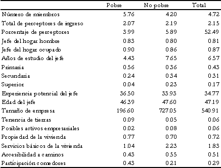 También se confirma que los pobres tienden a vivir en hogares relativamente más numerosos. El tamaño de la familia tiene un efecto positivo sobre la probabilidad de que un joven pertenezca a un hogar pobre, y esta relación positiva se da tanto en el ámbito urbano como rural.
