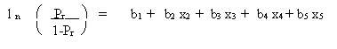 Pr / 1-Pr : exp (b1 + b2 x2 + b3 x3 + b4 x4 + b5 x5)