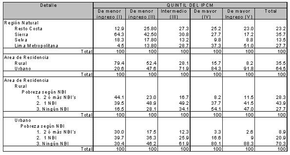 El cuadro Nº 2 indica, también que para cada estrato de ingreso superior (cuarto quintil). La población que reporta enfermedad o accidente según quintil de ingreso y que vivió en el área rural y no tenía ninguna NBI, conforme se encuentra en un quintil superior reporta enfermedad o accidente en una proporción, así en el primer quintil representó el 16,5% del total de esta población, en el segundo quintil 28,1%, en el tercer quintil, 34,1%, en el cuarto quintil 54,1% y en el quinto quintil 47,0%. La población rural sin ningún NBI es la que más reporto enfermedad o accidente: 54,1% y 47%, respectivamente.