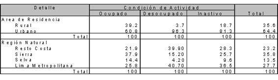 Cuando la población de inactivos se divide por áreas de residencia y regiones naturales, observamos resultados similares que las encontradas para la población desocupada.
