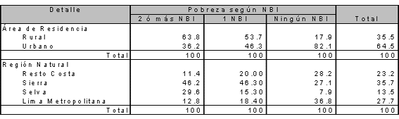 La población urbana conforme es menos pobre reporta más la enfermedad o accidentes, lo mismo ocurre con la población del Resto Costa y Lima Metropolitana. Finalmente, las características socioeconómicas vistas por el lado de las NBI de la población, muestran que la población más reporta la enfermedad o el accidente es aquella que tiene más información, así lo confirman las cifras de la población que habita en áreas urbanas , en Resto Costa o en Lima Metropolitana.