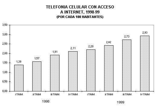 66. TELEFONIA CELULAR CON ACCESO A INTERNET POR CADA 100 HABITANTES, 1998-99