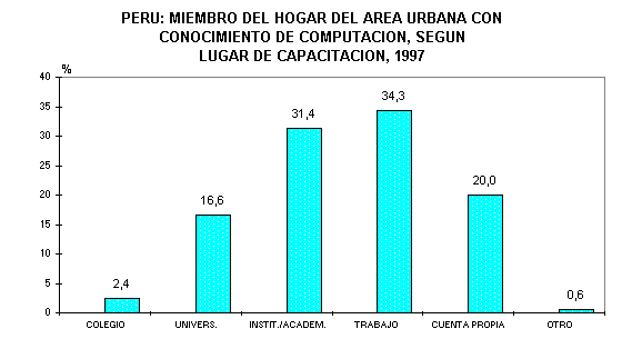 81. SEGUN AMBITO GEOGRAFICO, 1997 DE COMPUTACION POR LUGAR DE CAPACITACION, SEGUN AMBITO GEOGRAFICO, 1997 (PORCENTAJE)