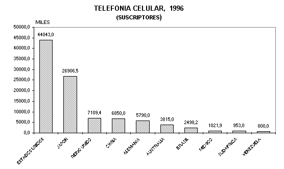 94. TELEFONIA CELULAR, SEGUN PAIS, 1992-96 (SUSCRIPTORES)