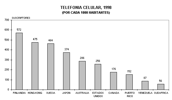 96. TELEFONIA POR CADA MIL HABITANTES, SEGUN PAIS, 1998