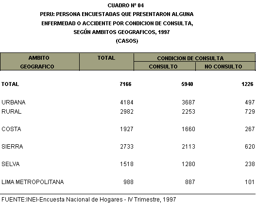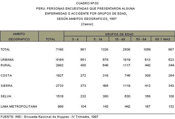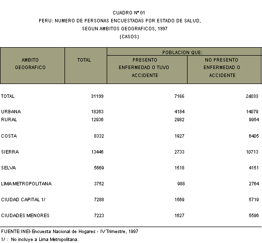 sobre la situación de salud de la población peruana,