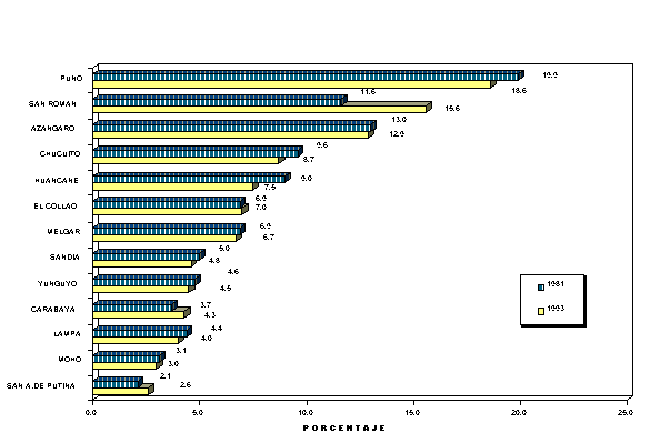 que tenían en 1981 son: Chucuito (4º lugar), Huancané