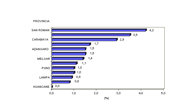 con 1,4%, Yunguyo con 1,1%, Puno y Sandia con 1,0%, Lampa con